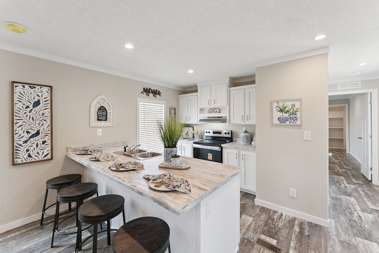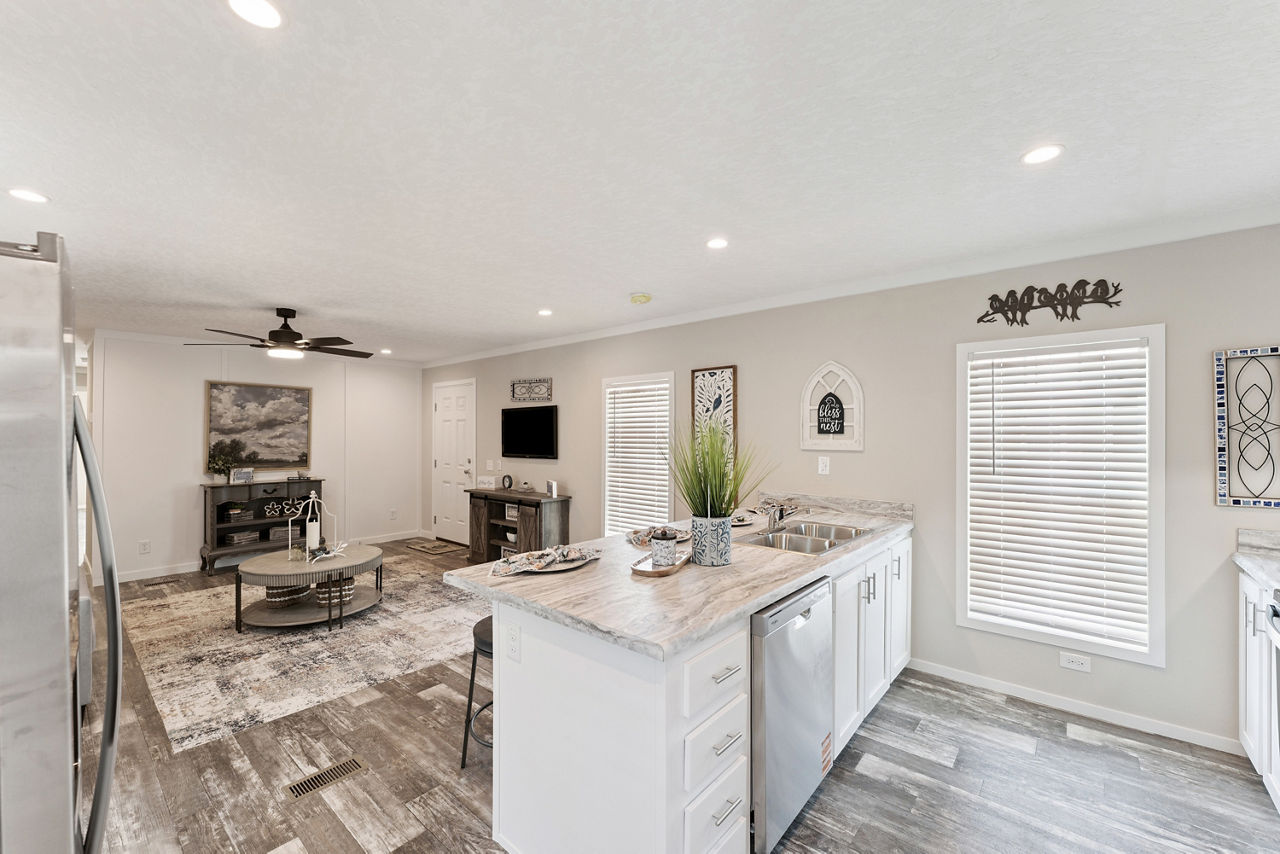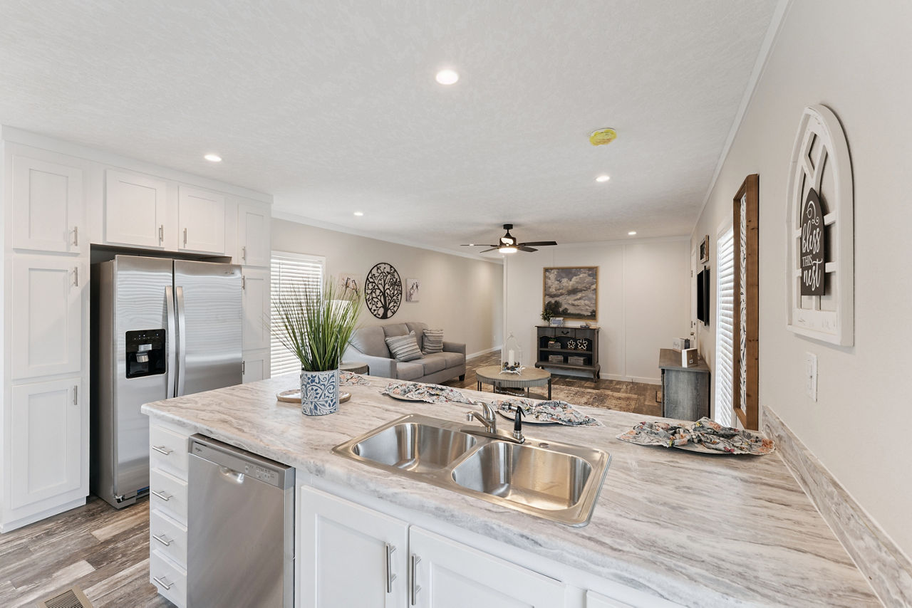 The Providence 1676540 is a thoughtfully designed single-section manufactured home that offers approximately 1,127 square feet of comfortable living space with three bedrooms and two bathrooms. Its efficient layout creates a welcoming atmosphere, featuring a spacious living room that flows naturally into the kitchen and dining area for an open, connected feel.