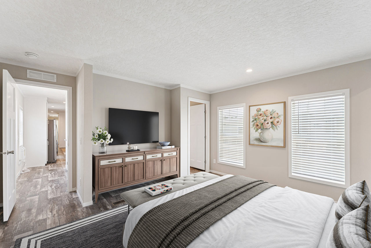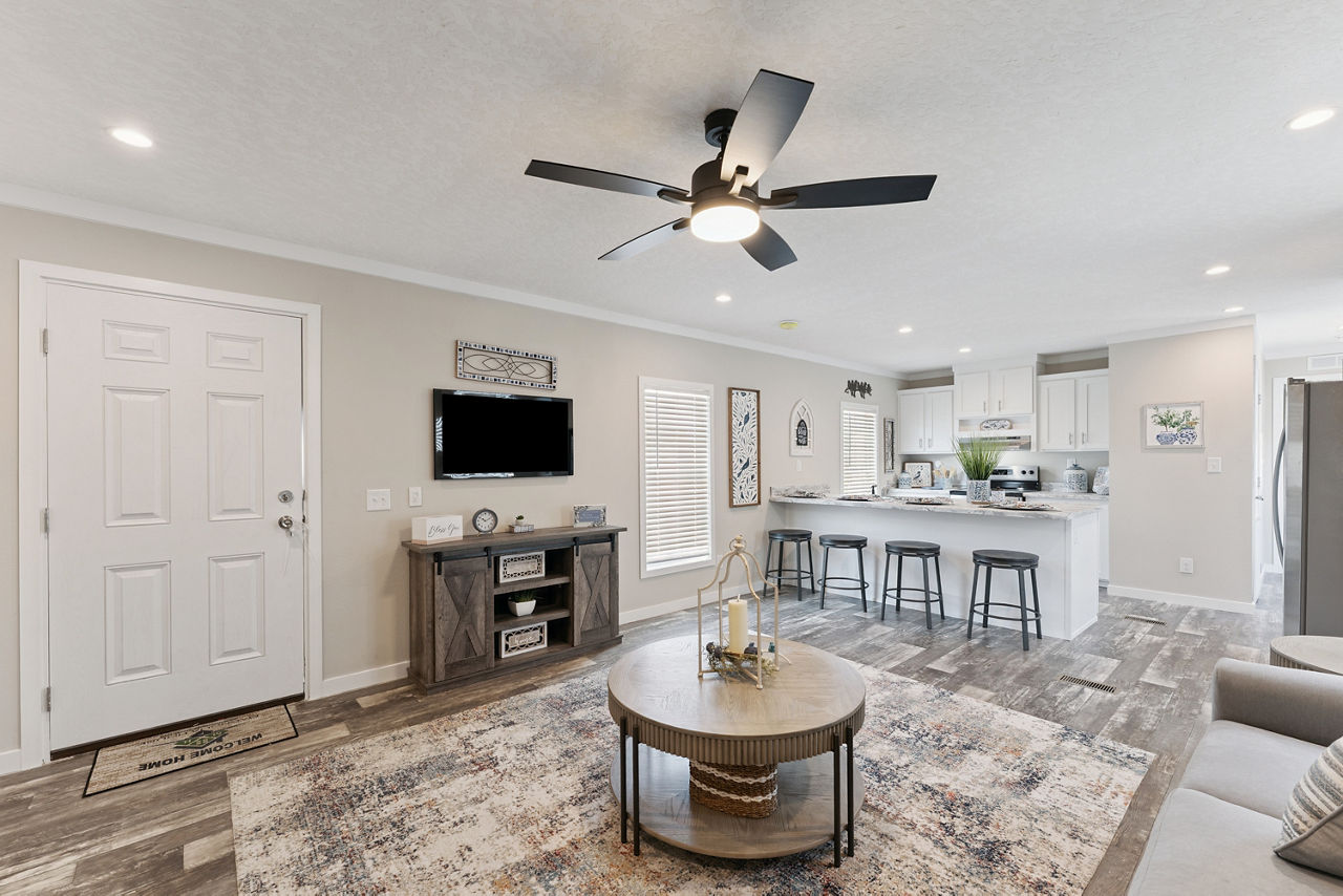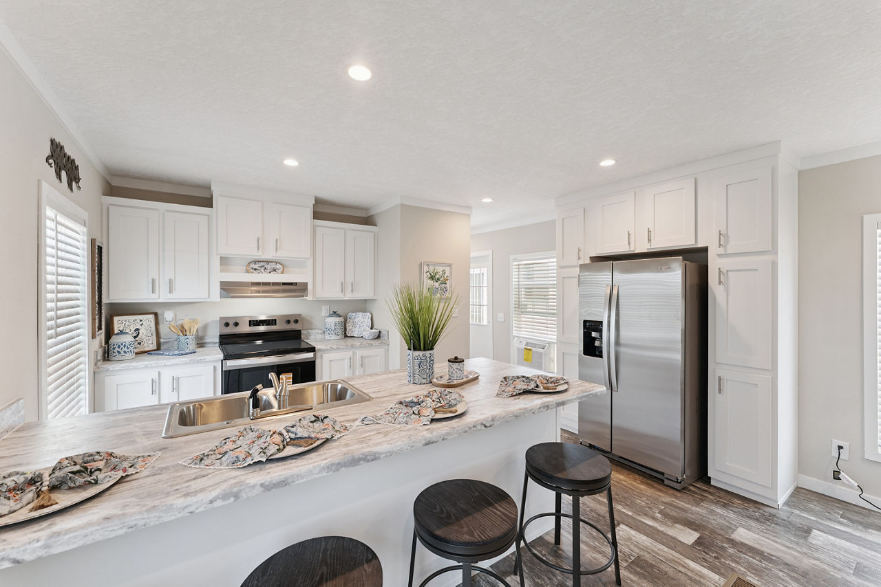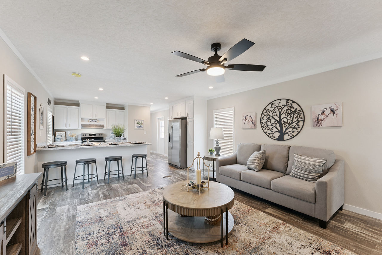 The Providence 1676540 is a thoughtfully designed single-section manufactured home that offers approximately 1,127 square feet of comfortable living space with three bedrooms and two bathrooms. Its efficient layout creates a welcoming atmosphere, featuring a spacious living room that flows naturally into the kitchen and dining area for an open, connected feel.