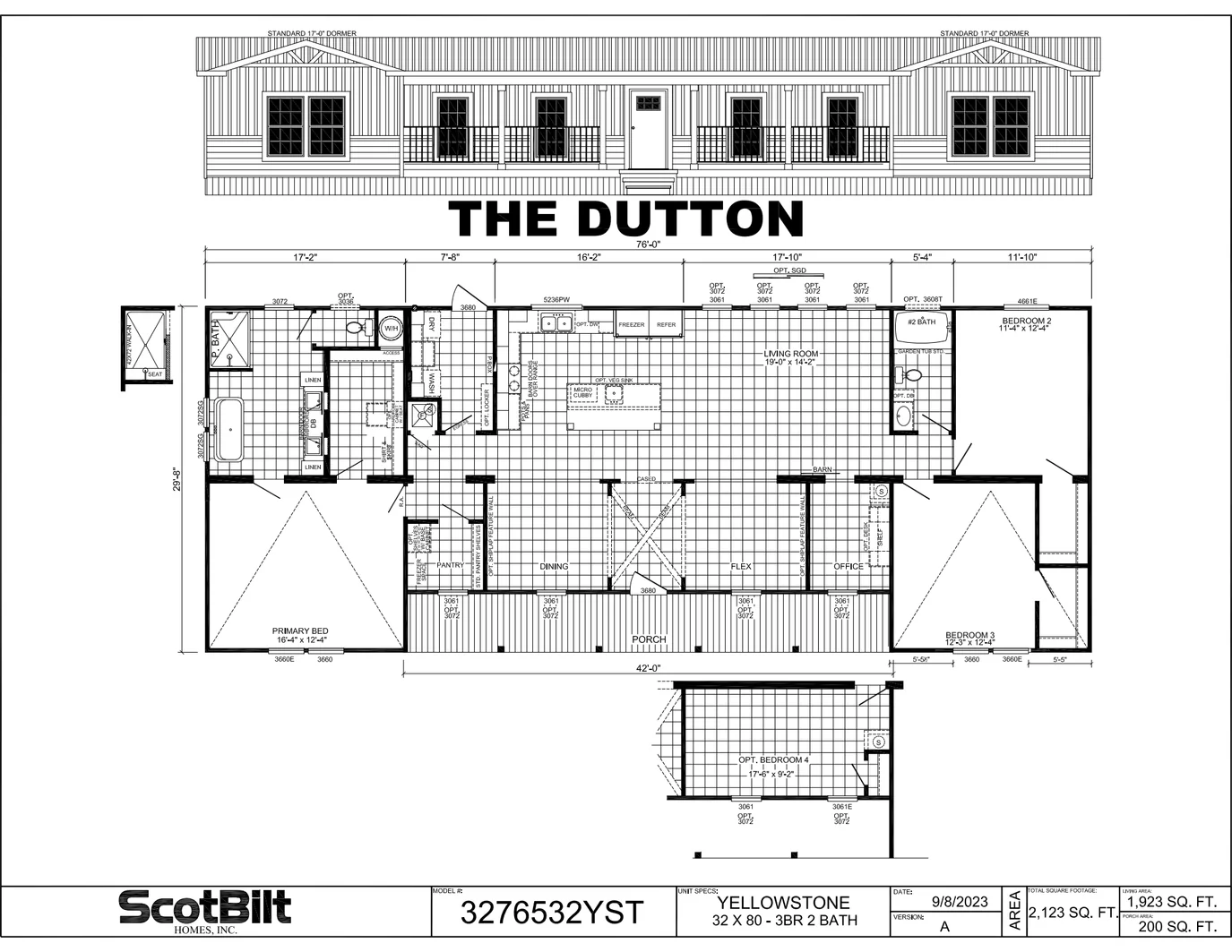 The Yellowstone 3276532 is a spacious multi-section manufactured home designed to provide a comfortable and functional living environment for larger households. Offering approximately 2,123 square feet of living space, this thoughtfully designed floor plan features three bedrooms and two bathrooms arranged within a wide 32-foot layout.
